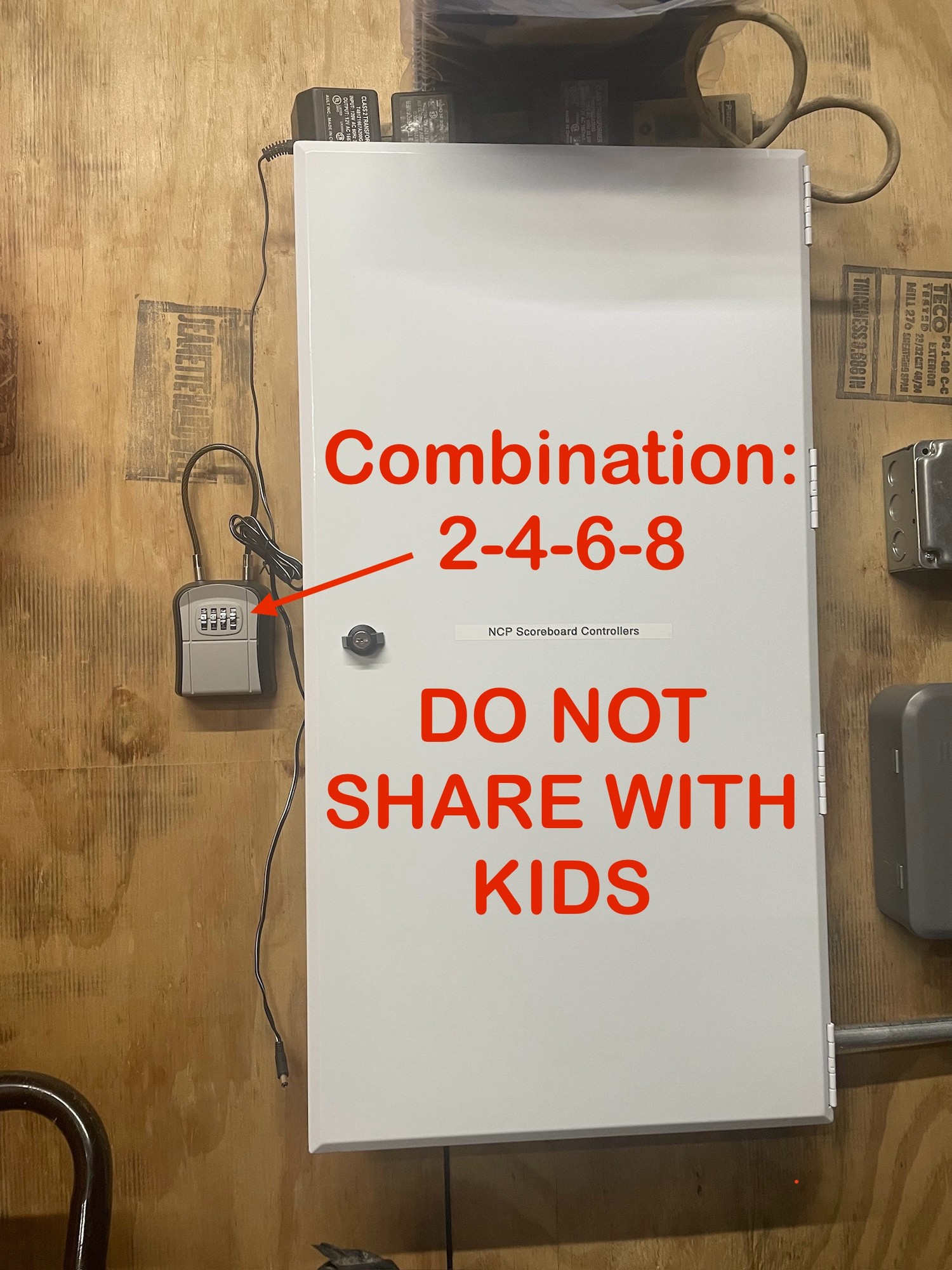 - Controllers can be found in the bunker near NCP 4 in a combination-lock box. Lock combination is: 2-4-6-8. PLEASE DO NOT SHARE THIS COMBINATION WITH ANYONE. NO KIDS ARE ALLOWED TO HAVE THIS COMBINATION.
